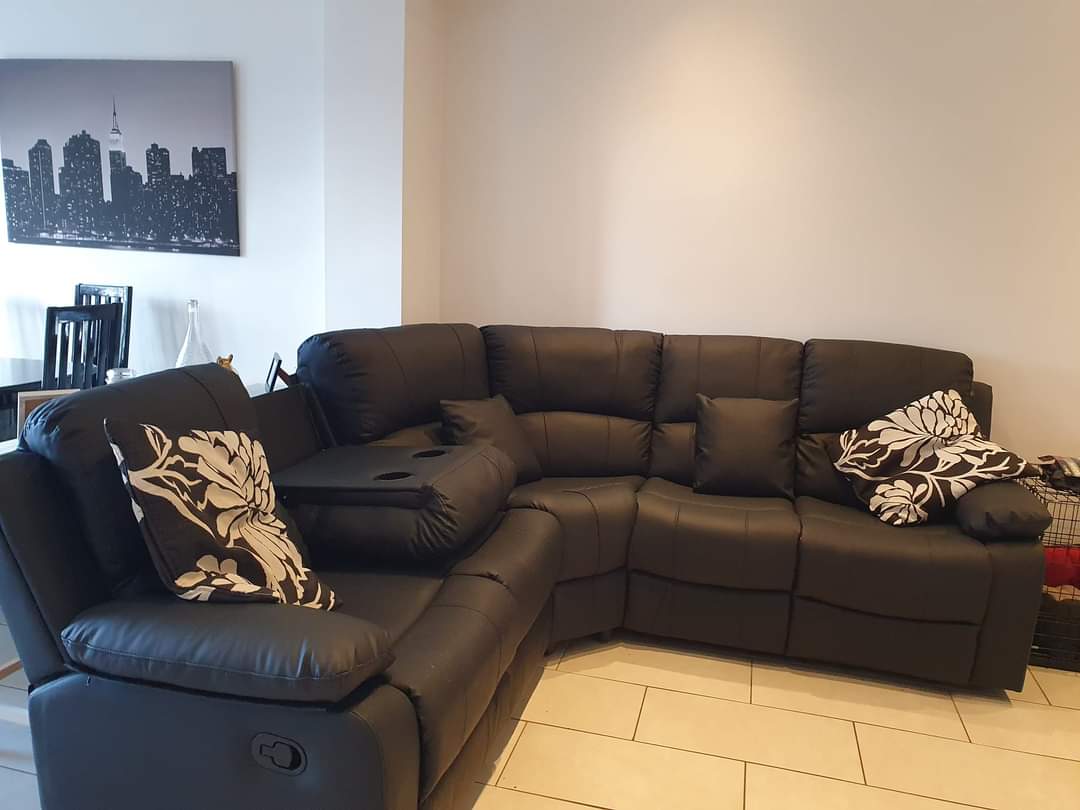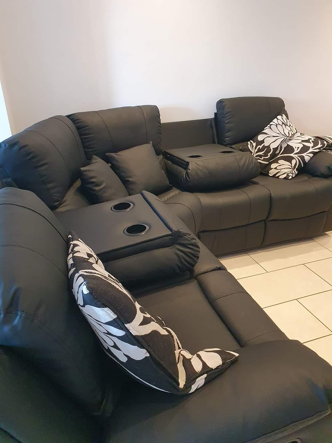 Upgrade your living room with the best selling Black Roma Leather Recliner Corner. With built-in cupholders, this sofa offers both style and convenience. Free delivery throughout the UK 🇬🇧 and a spacious 230cm x 230cm design make this a must-have for any home. Order now at sofaclubuk.com. #SofaShopping #furnituredesign #marketplace